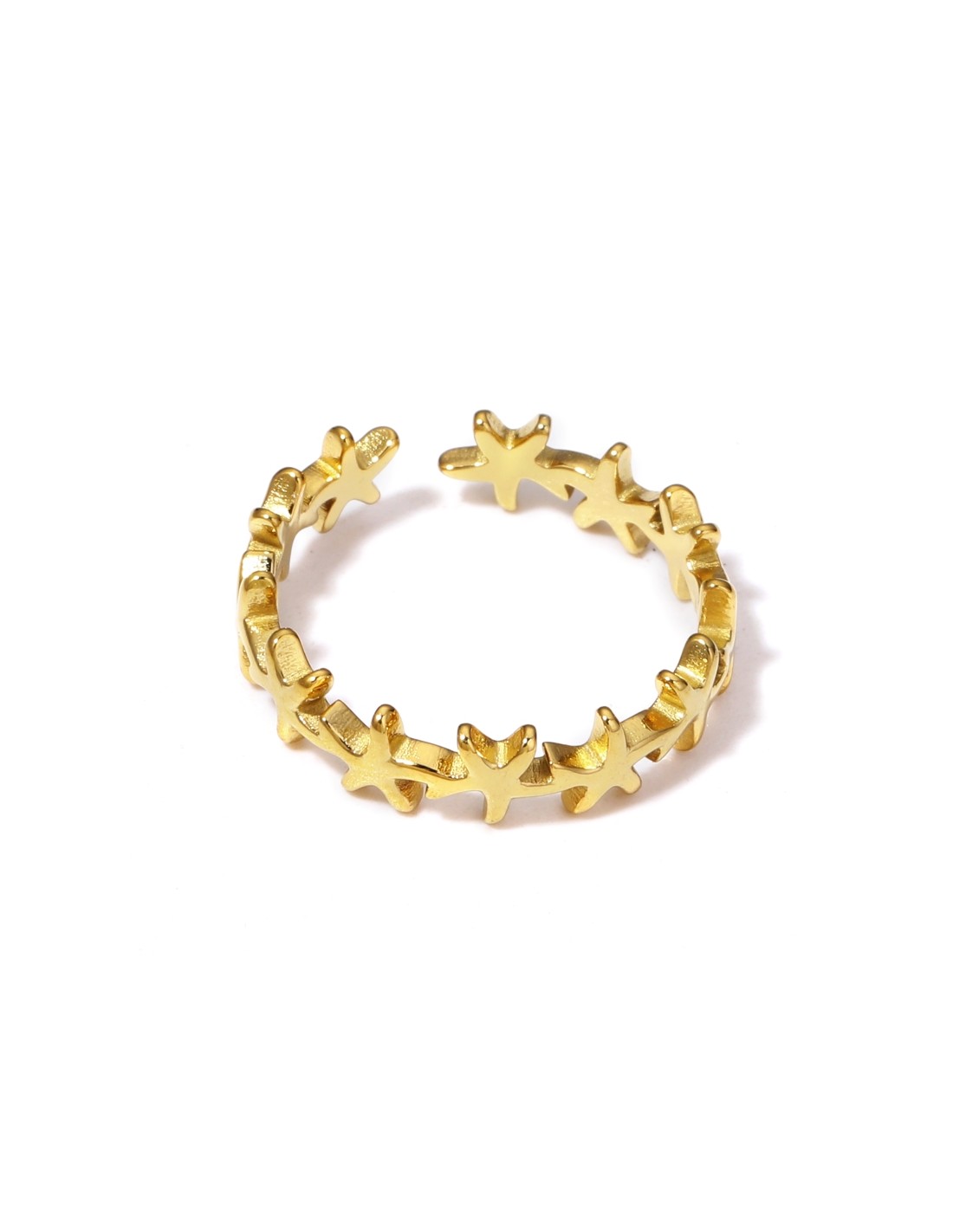Anillo dorado formado por una hilera de eslabones de estrellas del mar unidos. Su diseño evoca unidad y continuidad con un estilo moderno y elegante. Ideal para el uso diario o como un regalo especial.