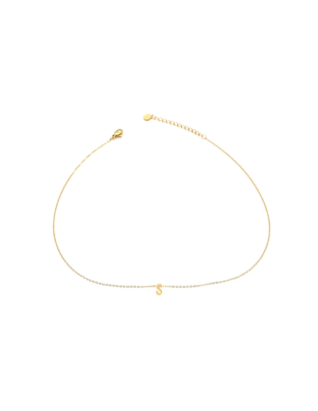 Collar con colgante en forma de la letra S, de diseño minimalista. Cuenta con un cierre de langosta y una cadena de extensión con un pequeño medallón decorativo, lo que permite ajustarla a diferentes tamaños de cuello. Ideal para expresar individualidad y estilo.